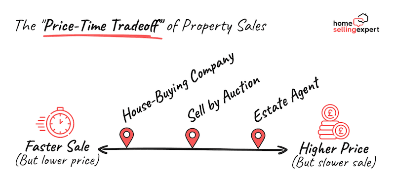 If you want a quick, easy sale but have more than 8 weeks, auction can be an option. It's a good middle-ground between estate agents and "buy my house" companies: