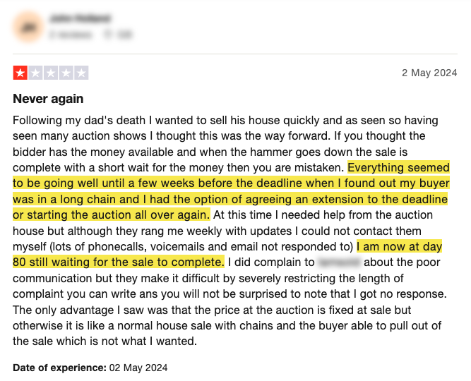 Selling your house by modern auction is not a great option if you’re working to a strict deadline.