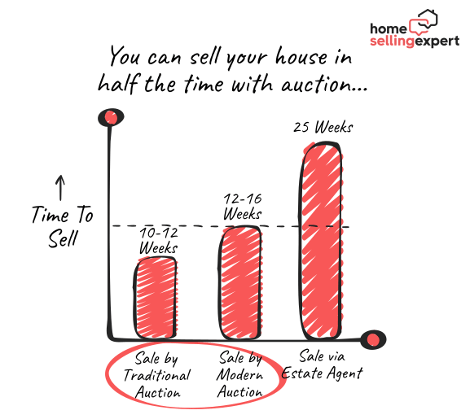 On average, traditional auctions take 10-12 weeks from instruction to completion. Modern auctions take slightly longer on average at 12-16 weeks. If you set an aggressive price and agree a pre-auction sale, it’s possible to instruct, exchange and complete on an auction sale in as little as 4 weeks.