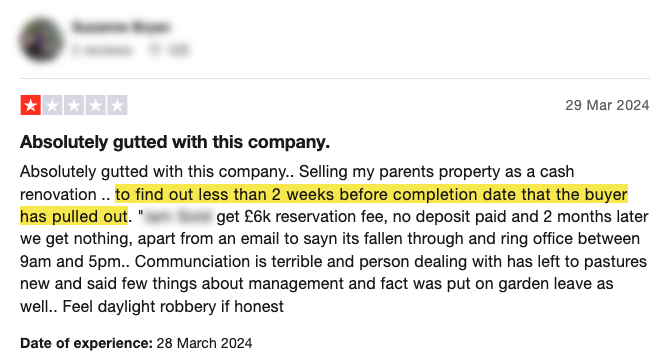 - Buyer can pull out at any point up to exchange but would lose their reservation fee.