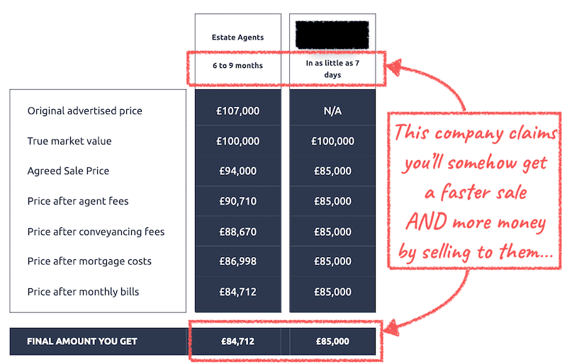 It says you'll get more money by selling to them than you'd get through an estate agent, and it only takes 7 days instead of 6-9 months.